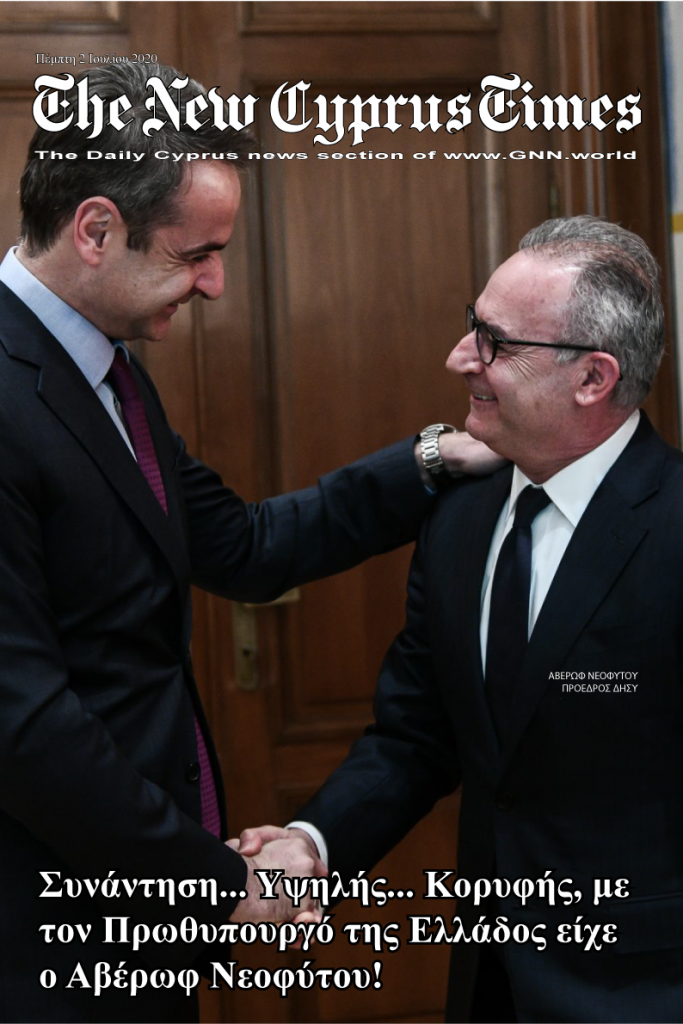 New Cyprus Times 2 Ιουλίου 2020 Αβέρωφ-Μητσοτάκης Previous Article Αυτοκράτωρ η Πρόεδρος? Ο ΠτΔ της Κύπρου Νίκος Αναστασιάδης αποφασίζει μόνο γιά τον εαυτό του! (video) Next Article New Athens Times 2 Ιουλίου 2020 Ελένη Μενεγάκη-Άγγελος Λάτσιος