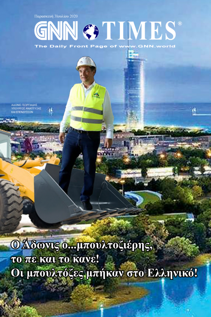 GNN Times 3 Ιουλίου 2020 Άδωνις Γεωργιάδης “Μπουλτοζιέρης” Previous Article "Το ελληνικό συμβολίζει τη Νέα Ελλάδα που θέλουμε, αφήνουμε το χτες και ξεκινάμε ένα ελπιδοφόρο μέλλον!" είπε ο Πρωθυπουργός εγκαινιάζοντας τη μεγαλύτερη ανάπλαση στην Ευρώπη ! Next Article «Πόλεμος» στην Ευρωβουλή! Ναί, είναι αλήθεια δυστυχώς! Το ΕΛΚ καταγγέλλει Σοσιαλιστές και Αριστερά ότι μπλόκαραν ψήφισμα κατά της Τουρκίας!
